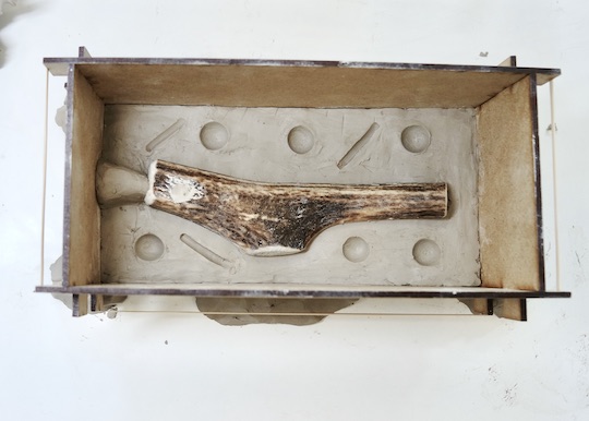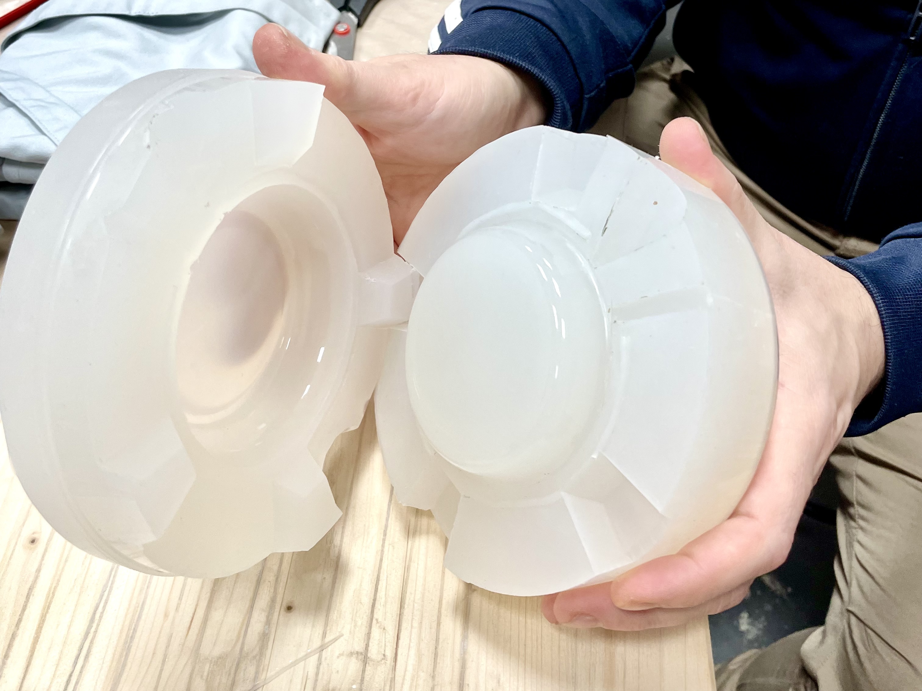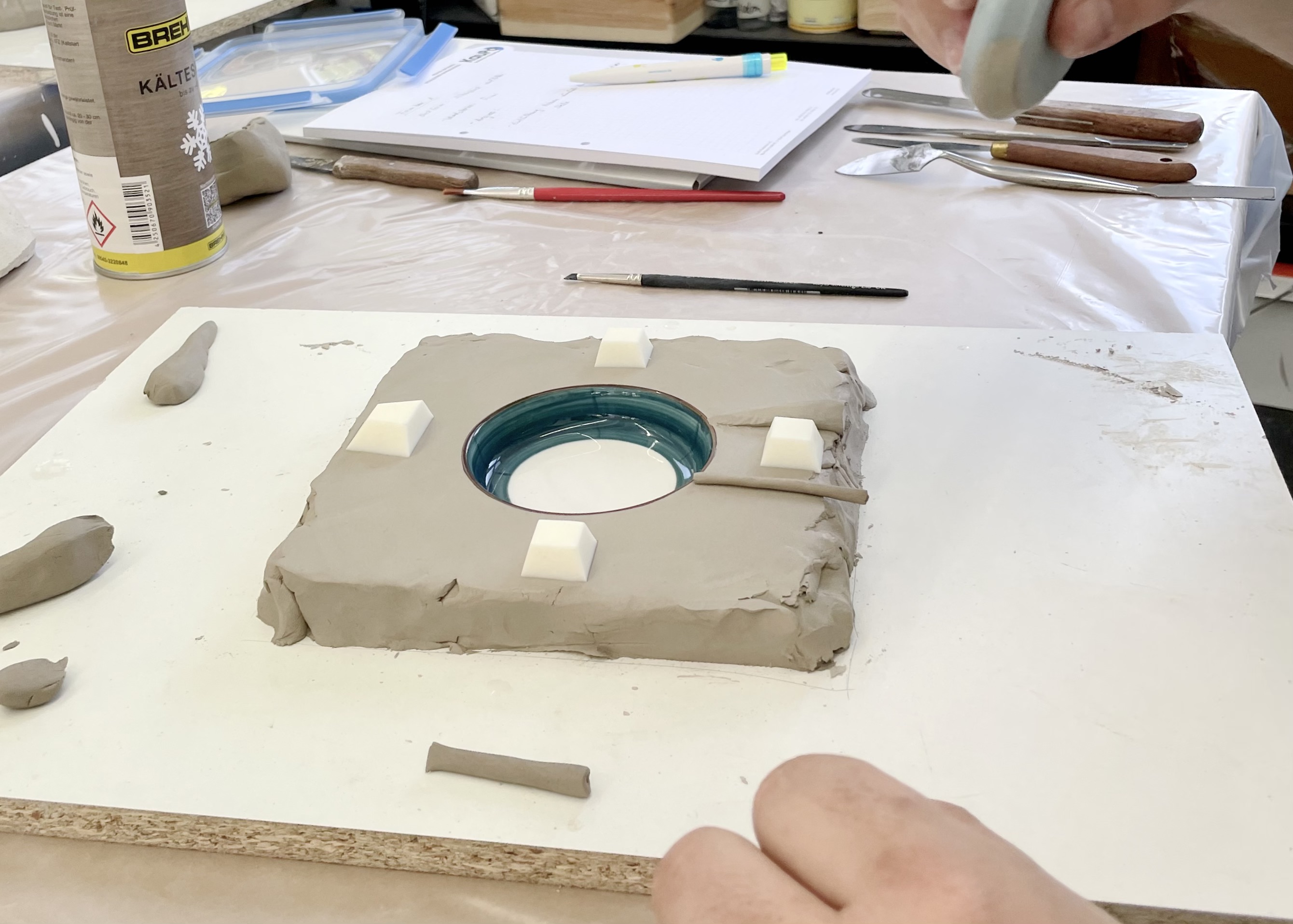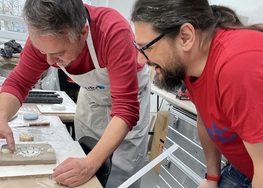 Anschließend wird die Herstellung einer zweiteiligen Form durchgeführt. Dabei erlernen die Teilnehmer die Modellierung einer Teilung (Modelliereinbettung), die Vorbereitung des Modells und das Gießen der zweiteiligen Negativform. Abschließend wird ein Abguss mit PU Harz vorgenommen.