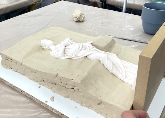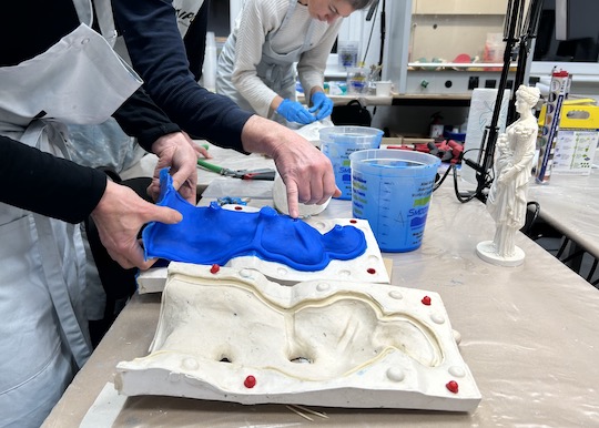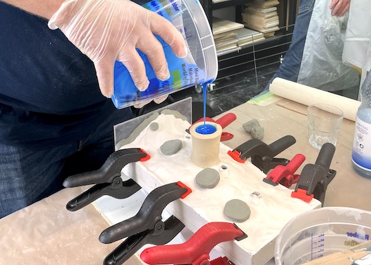 Gearbeitet wird mit Clayette, Silikon und Acrylic One Polymergips zum Bau der Stützform.