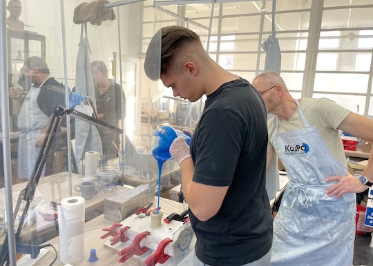 Nach der theoretischen Einführung über den konischen Aufbau und der bestmöglichen Teilung, erstellen die Teilnehmenden eine Matrixform. Die Vorbereitung des Modells und der richtige Einsatz von Trennmitteln werden unter anderem Bestandteile sein. Es wird zudem die Eingussstrategie für das Silikon und die richtige Platzierung von Luftpfeifen behandelt. Auch das Anlegen von Luftkanälen zum Gießen des Replikats ist ein wichtiger Bestandteil. Zahlreiches Detailwissen wird vermittelt.
