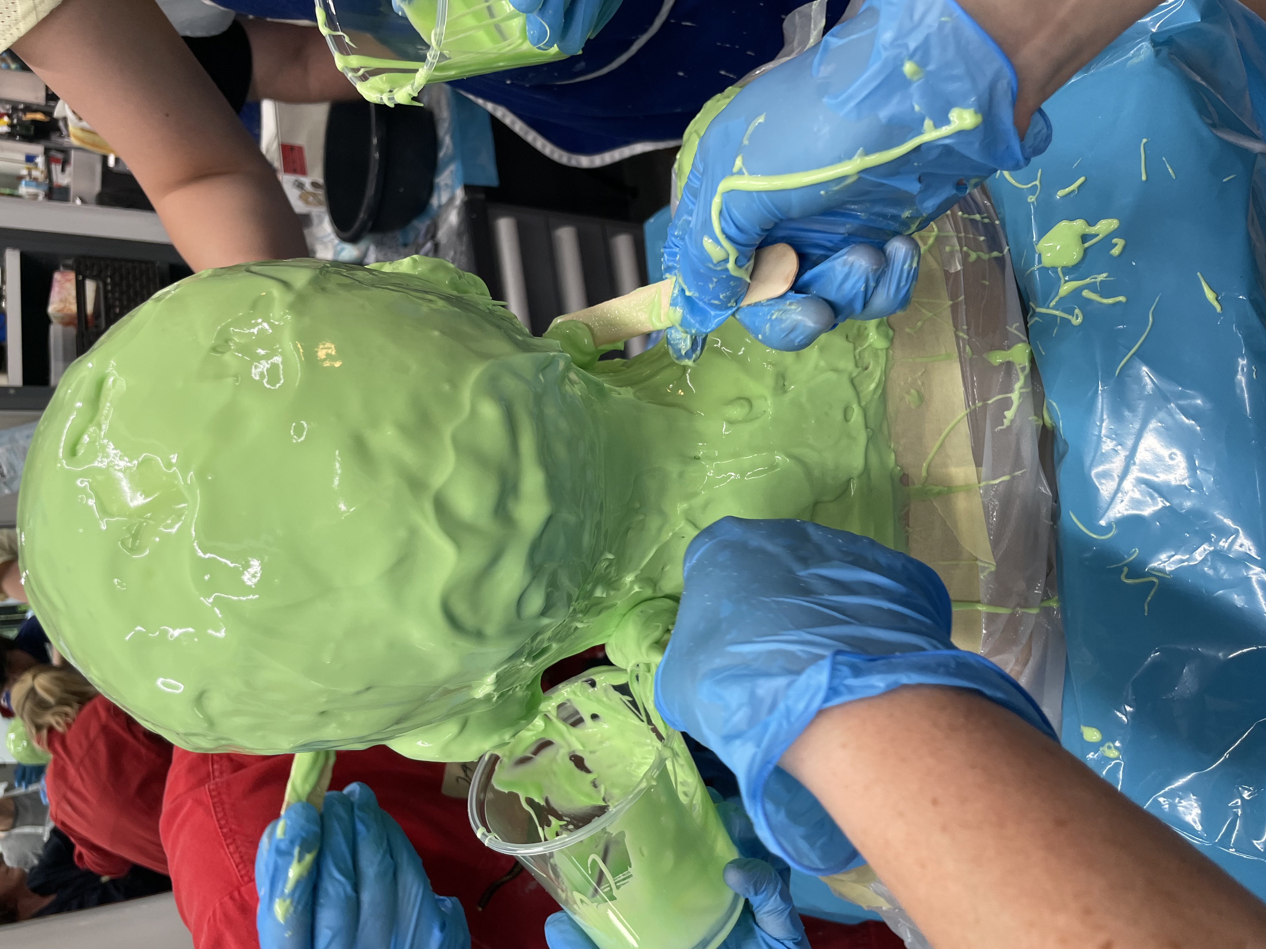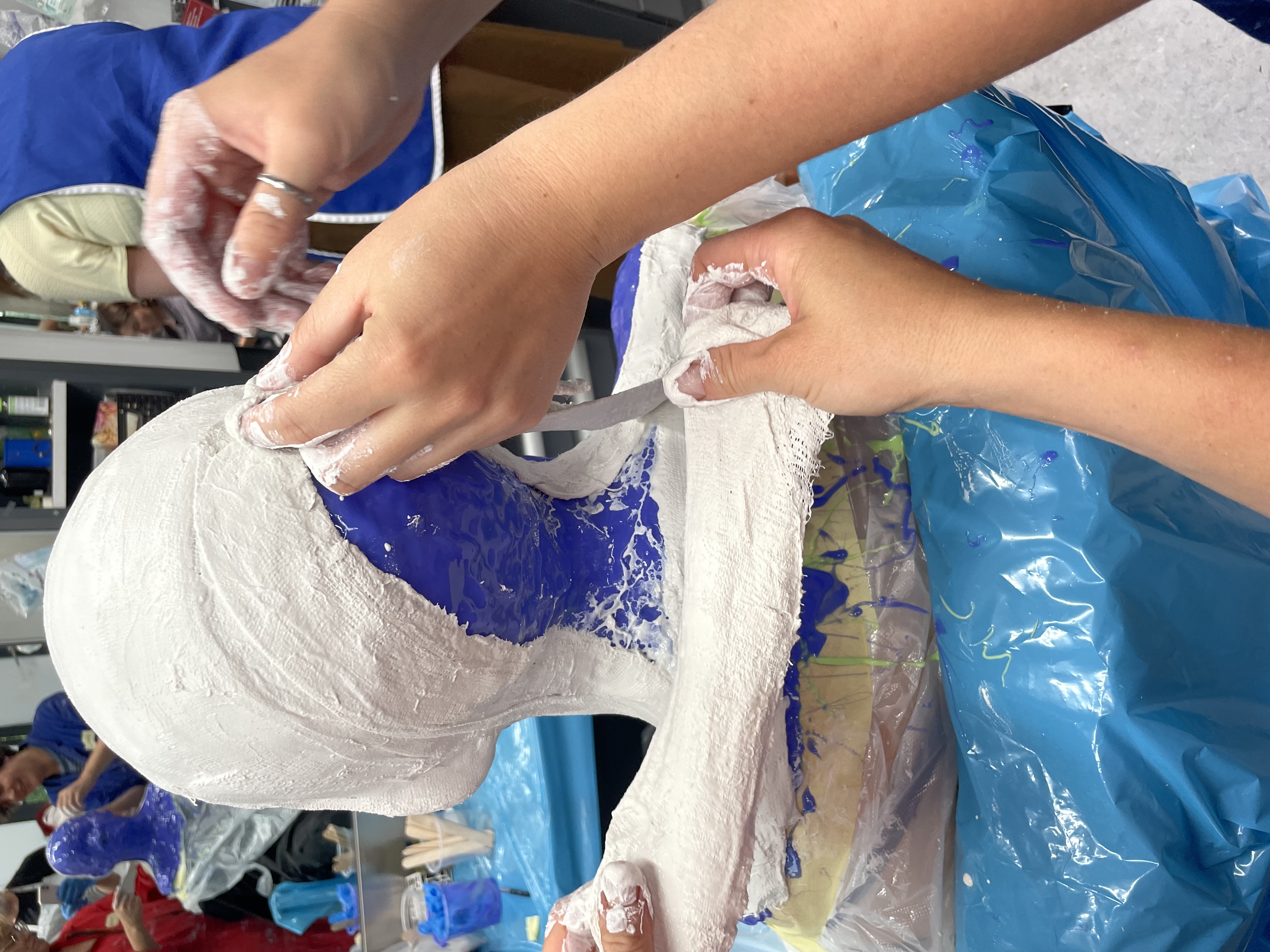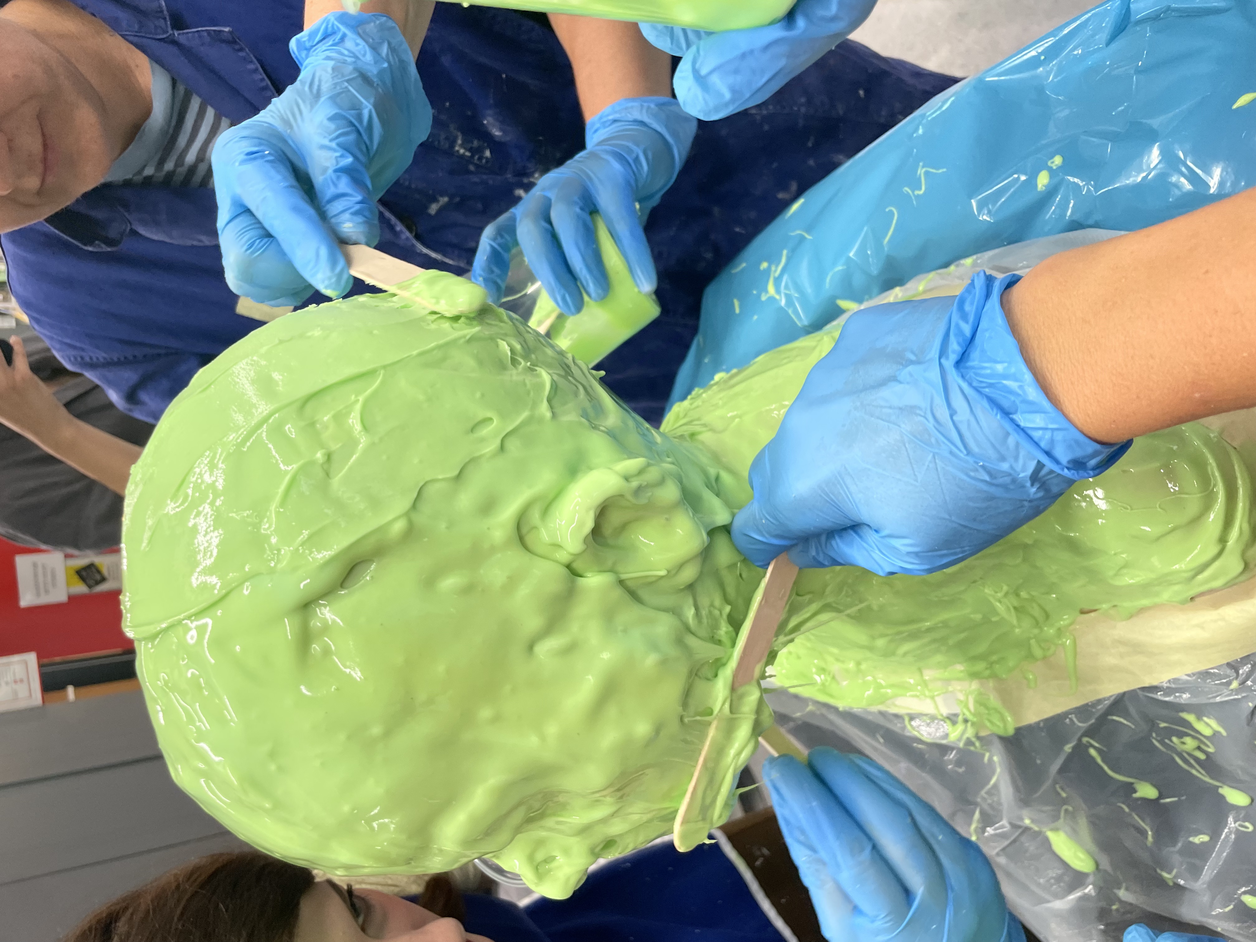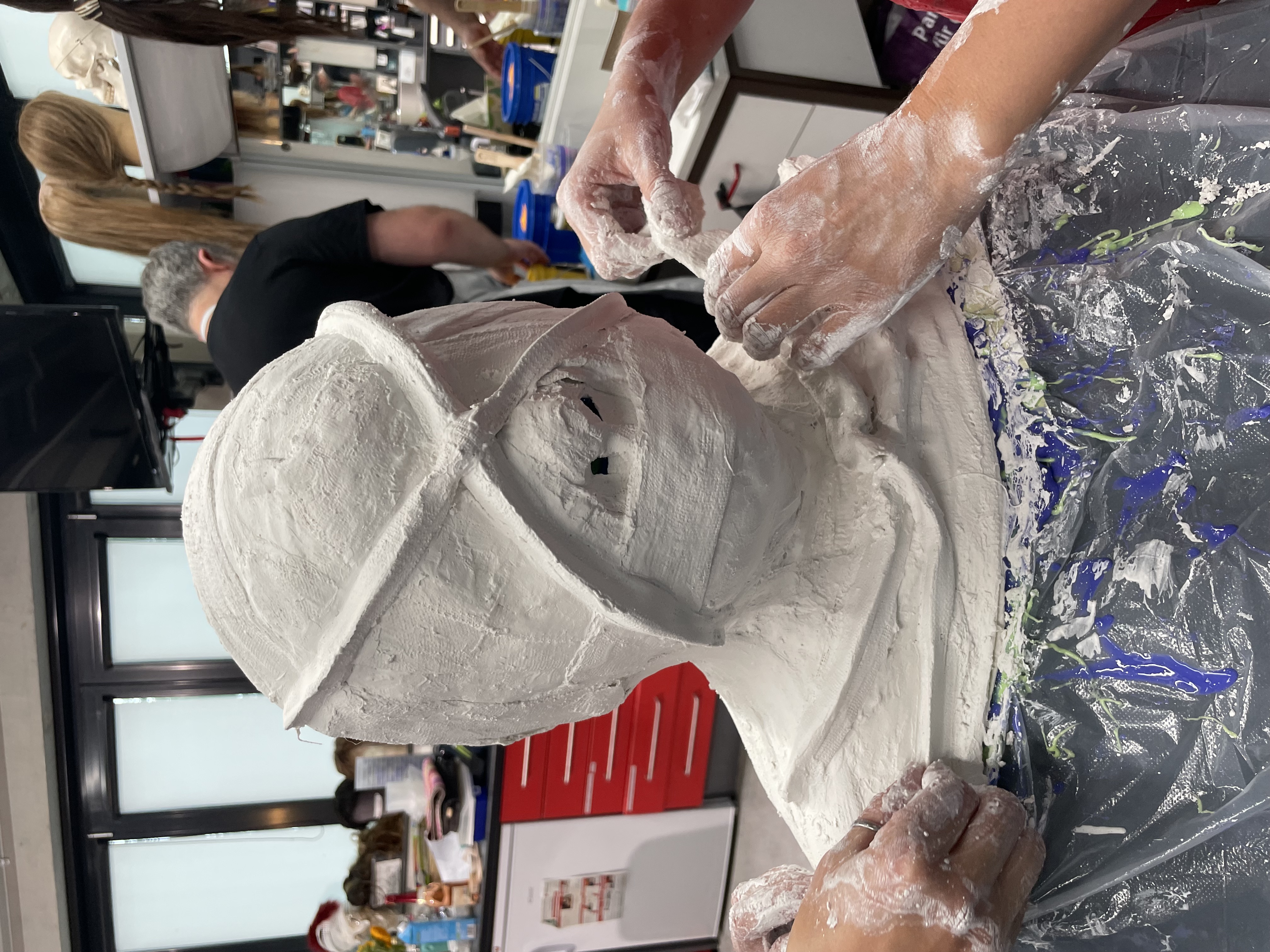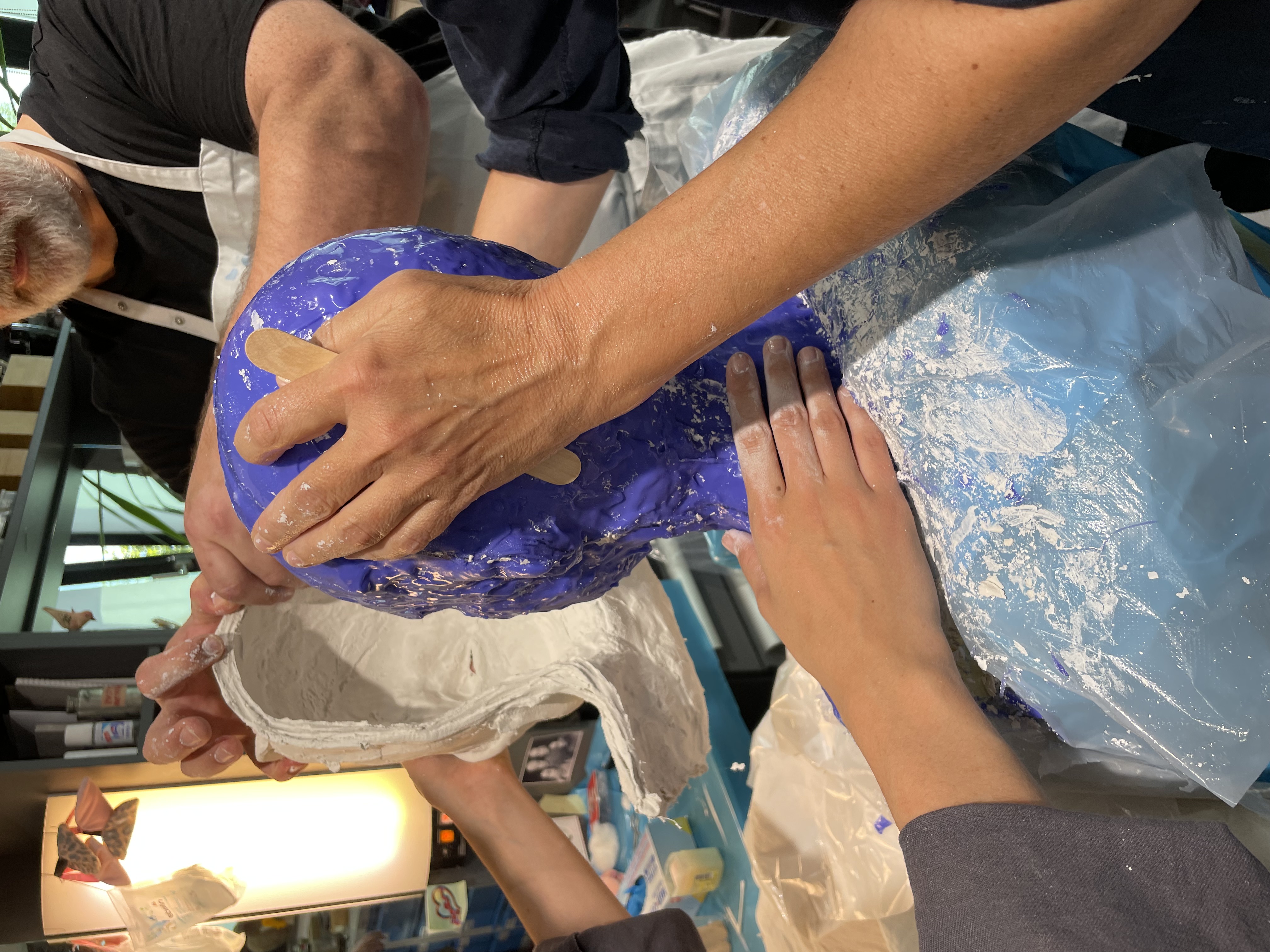 Am Nachmittag machen die Teilnehmenden selbst einen Kopfabdruck und erlangen so Sicherheit im Umgang mit dem Material.