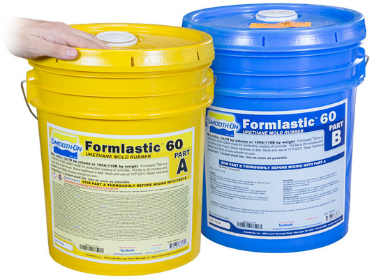 FORMLASTIC™ 48 & 60 sind gefüllte, elastische Polyurethane mit hervorragenden physikalischen Eigenschaften, speziell geeignet für Betonseriengüsse. FORMLASTIC™ ist in den Shore A Härten 48 und 60 erhältlich und wird in einem einfachen 1A :1B Volumenverhältnis gemischt. Die gute Fließfähigkeit erleichtert die Verarbeitung zusätzlich und erfordert keine Vakuumentlüftung. FORMLASTIC™ Polyurethane härten bei vernachlässigbarer Schrumpfung zu einem langlebigen Kautschuk, der den hohen Ansprüchen der Serienproduktion mit Beton, Gips und anderen abriebintensiven Materialien gerecht wird. Negativformen aus FORMLASTIC™ eignen sich hervorragend zum Vergießen von modernen Betonarten wie UHPC (Ultra High Performance Concrete) oder SCC (Self Compacting Concrete) und ermöglichen dabei einheitliche und farbgetreue Betonoberflächen.
