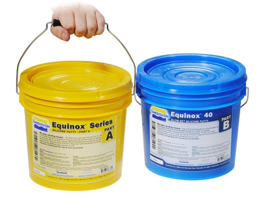 EQUINOX™ Silicone Putty Products are new silicone compounds (platinum catalyst) that can be easily mixed and applied by hand to a variety of surfaces. EQUINOX™ Putty is mixed in equal amounts (1A:1B) by volume. EQUINOX™ 35 has a pot life of about 1 minute with a cure time of about 7 minutes at room temperature (73°F/23°C). EQUINOX™ 38 has a pot life of 4 minutes with a cure time of 30 minutes and EQUINOX™ 40 is a slower version with a 30 minute pot life and 5 hour demold time.Shrinkage is low and cured rubber is exceptionally strong (very high tensile strength), durable and will resist high temperatures (for casting low-temperature melt metal alloys). They also resist cure inhibition. Applications include making fast mold impressions from almost any surface, orthotics / orthopedic, equine hoof repair, jewelry making and more.
